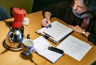 UG: Wolfram schreibt klassisch mit Stift und Klemmbrett, ich dann gleich am Computer. Meine Schrift kann auch keiner lesen. (lacht)